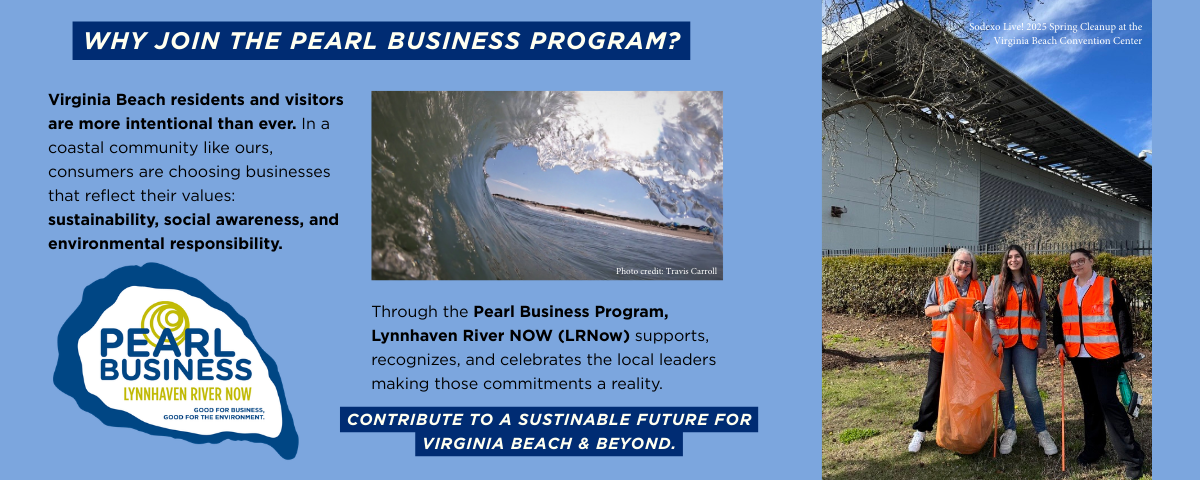 By leading the way in restoring and protecting Virginia Beach’s waterways through responsible business decisions and supporting environmental stewardship efforts, businesses share the benefit of clean and accessible natural areas with the local communities. |