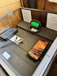 Regular customer Allen Wharton often visits the brewery for a beer and as usual, that day was charging his phone on the charging pad in the box. “It works fine,” he said, ‘I’ve used it several times.”