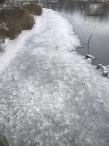 In this latest cold spell, a cove in front of Brent James’ house on the Lynnhaven River almost froze over.