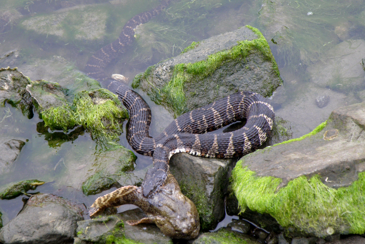 Here’s a case in point, a photo, taken by Robert Brown, of a northern water snake dining on an oyster toad!