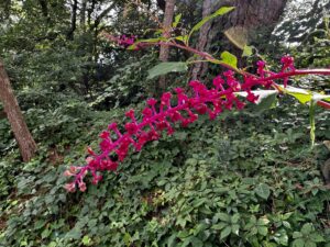 The big wild native with its long leaves and purple berries is not appreciated by many gardeners, mainly because birds love the berries and spread pokeweed seeds round the yard.