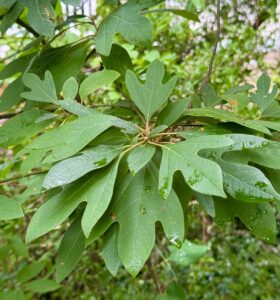 My yard has a small grove of sassafras trees, a little tree with a story all its own in its mitten and glove-shaped leaves. I see more Palamedes than any other butterfly nectaring in my yard.