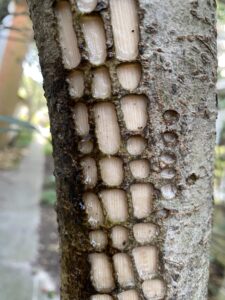 There are no woodpeckers in Australia, but our good old Virginia sapsuckers really do have a creative touch when it comes to the sap holes they drill in trees here.