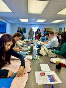 That led to the Saturday morning spring gathering in LRNow’s conference room. Paige held an online and in-person discussion about the problems with plastic bags. Then the students created 46 no-sew tee shirt bags to add to the more than 10,000 bags that LRNow has distributed to the community.