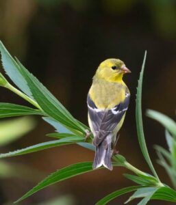 Male goldfinches are in their best yellow finery this time of year. Golden yellow with black heads and wings, the males also are foot loose and fancy free, out to impress the ladies.